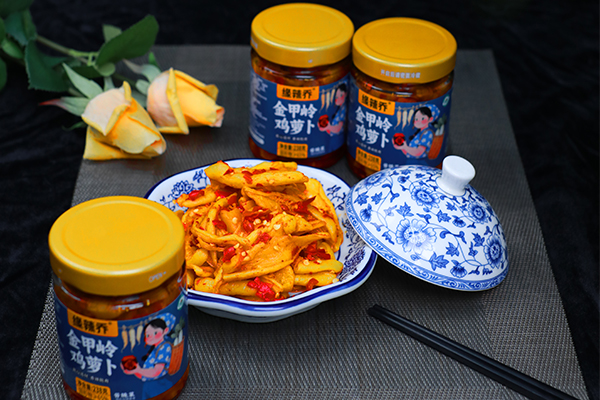 金甲岭盛产黄泥萝卜,由于其环境及优良的土壤,所产萝卜含水量高、入口甜、嚼后无渣,金甲岭鸡萝卜吃进嘴里嘎嘣脆,香辣脆爽,一直深受人们喜爱