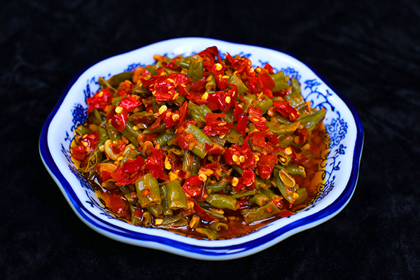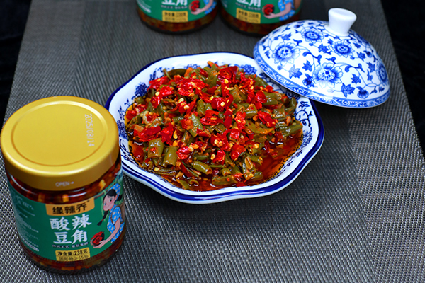 精选新鲜豆角,经传统工艺腌制发酵,佐以香辛料调配,呈现酸、辣、鲜、脆的经典风味。是一款即食佐餐小菜,兼具开胃解腻、促进食欲的功效。